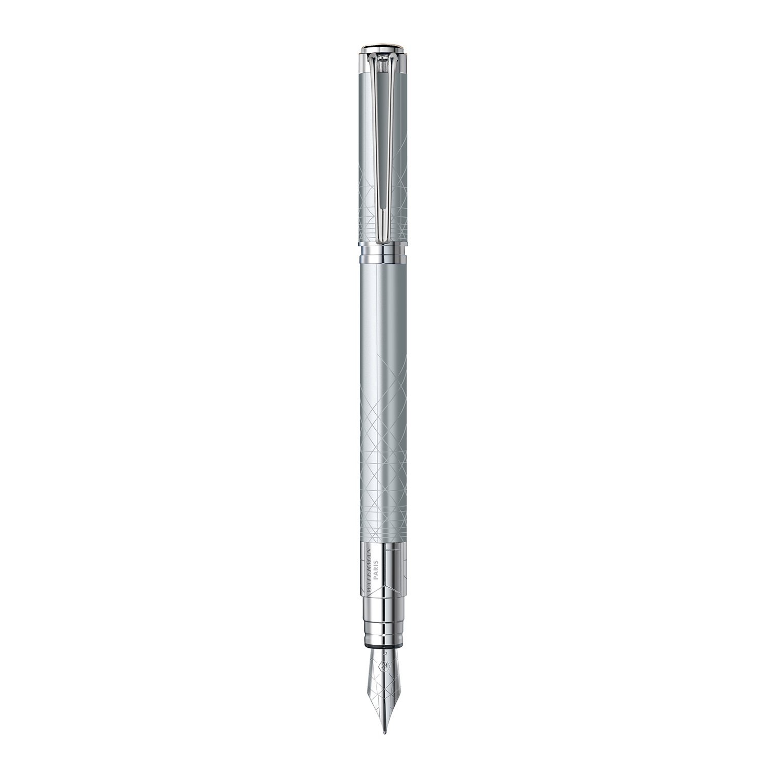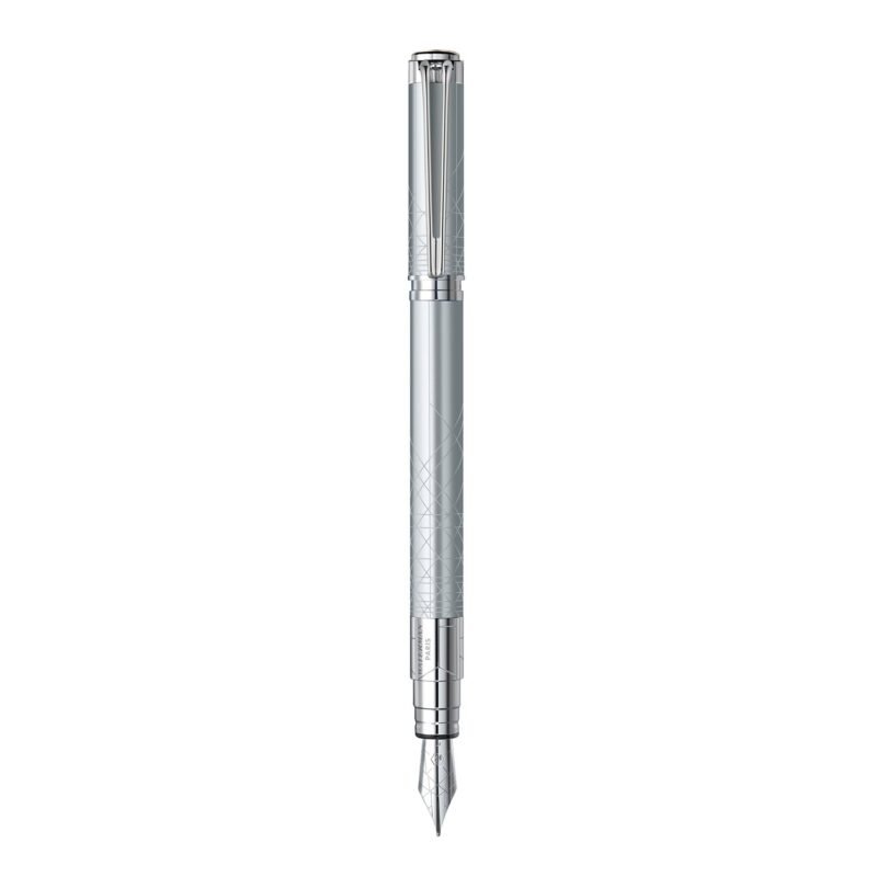 Το σώμα και το καπάκι διαθέτουν ασημί φινίρισμα με σατινέ λάκα, που συνδυάζεται ιδανικά με λεπτομέρειες από γυαλιστερό χρώμιο, δημιουργώντας ένα εντυπωσιακό αποτέλεσμα “tone-on-tone”. Η μύτη τύπου Fine από ανοξείδωτο ατσάλι προσφέρει καθαρή, σταθερή ροή και εξαιρετική αίσθηση γραφής.